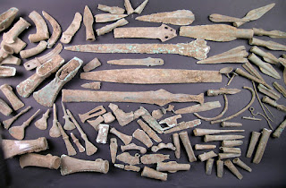 It is always difficult for an archaeologist to know what to make of a "hoard," a group of ancient or prehistoric objects buried together without any obvious context. Were they buried for safekeeping, or as an offering to the gods? If they are broken, were they intended to be melted down? Are they spoils of war, collected at the end of a battle? All too often, we can only guess. It is all the more difficult if the objects are of very different dates.