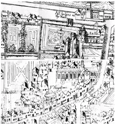 Austin Friars in c1550, Copperplate Map (image is in the Public Domain). Cromwell's former home is at 3.